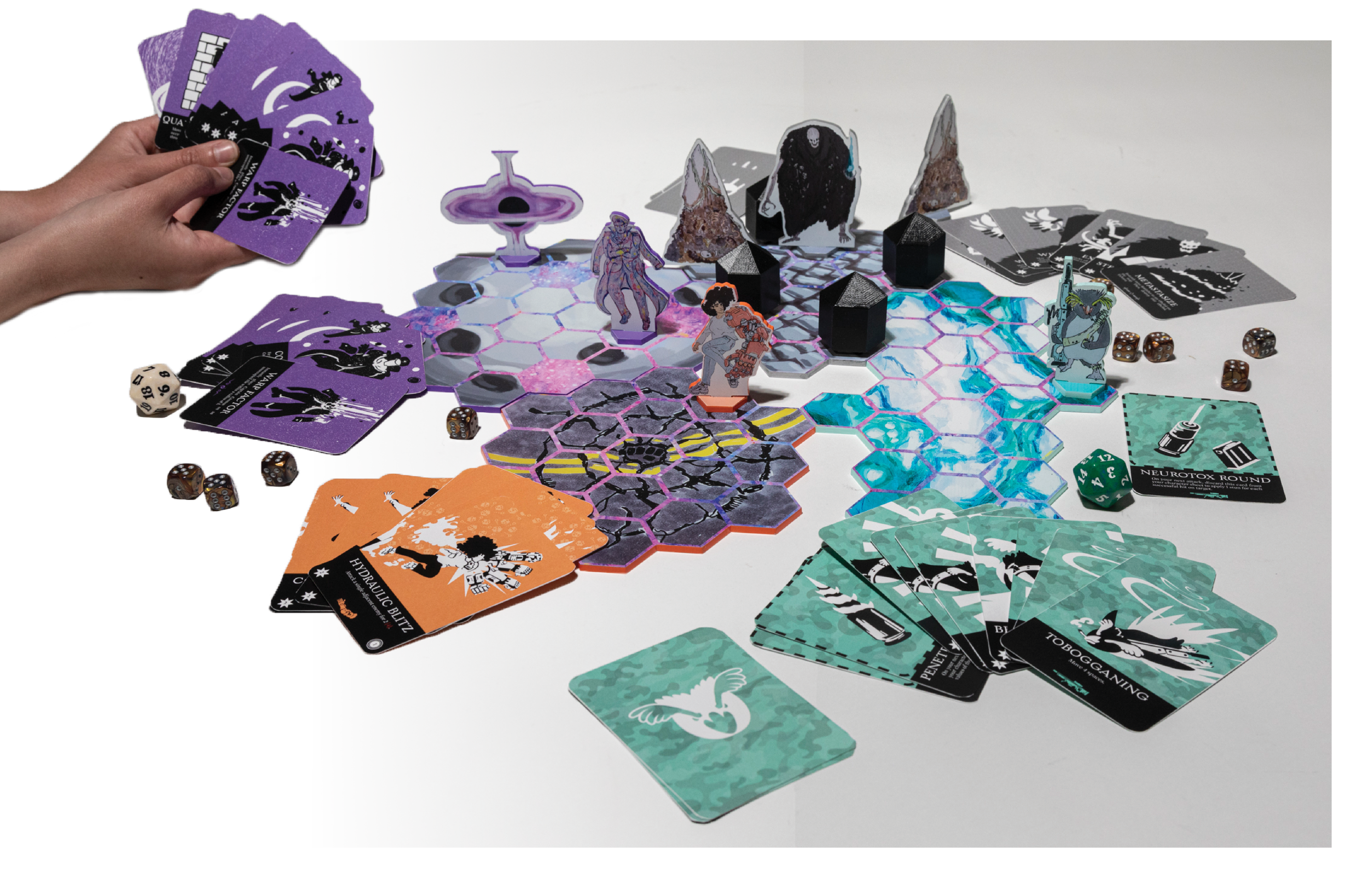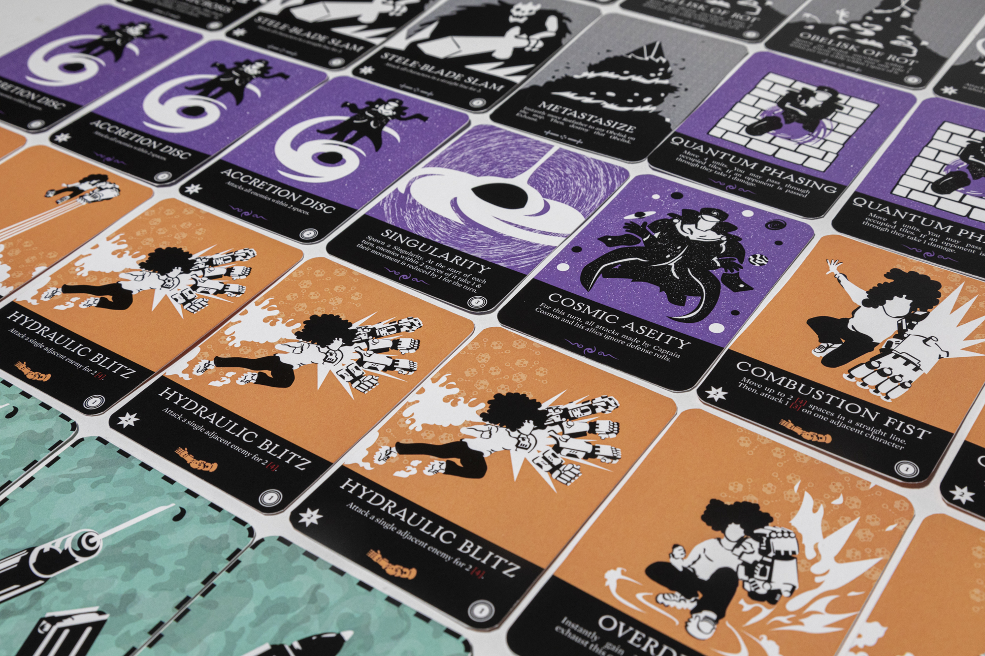 Designed to be fast-paced & strategic, Captain Cosmos takes inspiration from fighting games. With its character-based gameplay and modular board, it’s different every time! I created the character designs and translated them into card designs. Each comes with standees, boards and other peripherals all crafted to form an immersive experience.