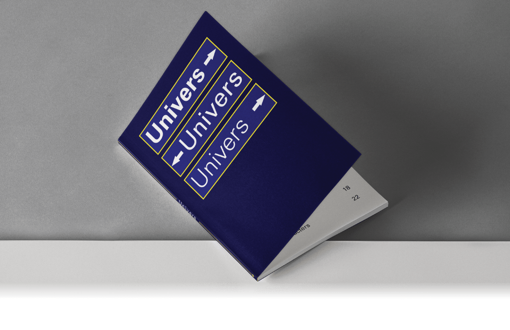 I was tasked with designing a specimen book for Univers. This starts with research and application – creating a design that is technically and thematically appropriate for the given typeface.